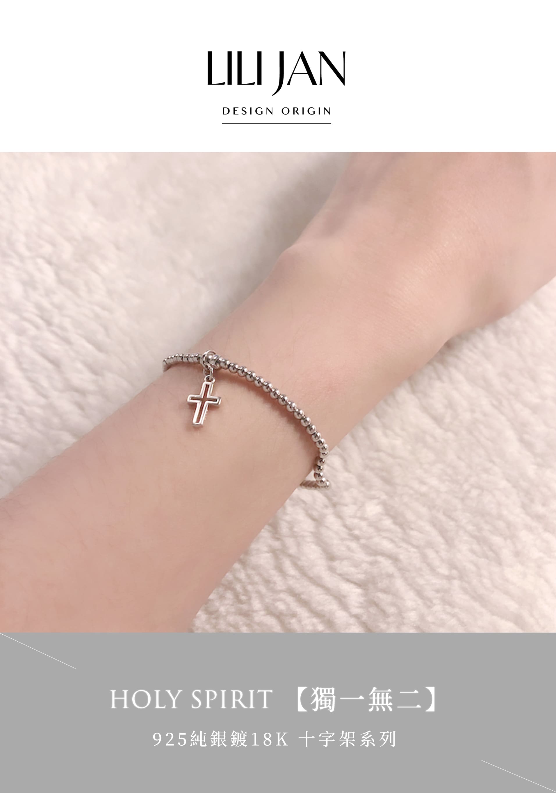 Holy spirit【獨一無二】925純銀鍍18K金 細串珠十字架手環(現貨M/L) +