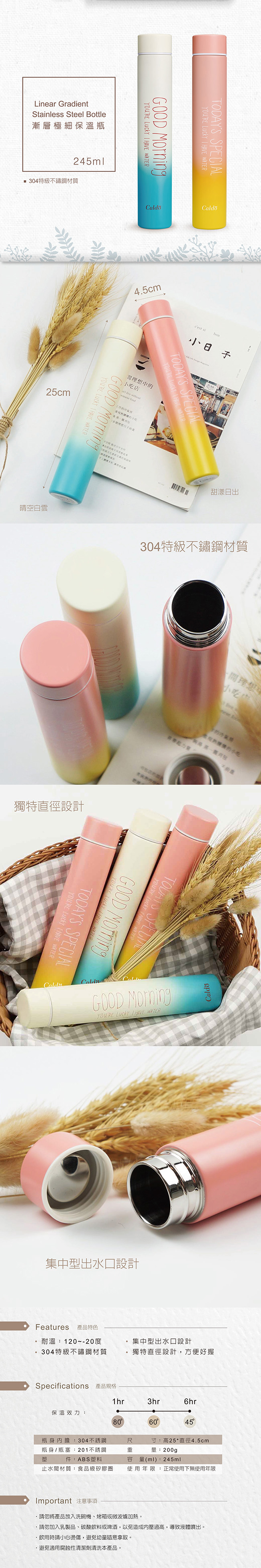◆ 材質:內膽-304不鏽鋼 / 瓶身-201不鏽鋼