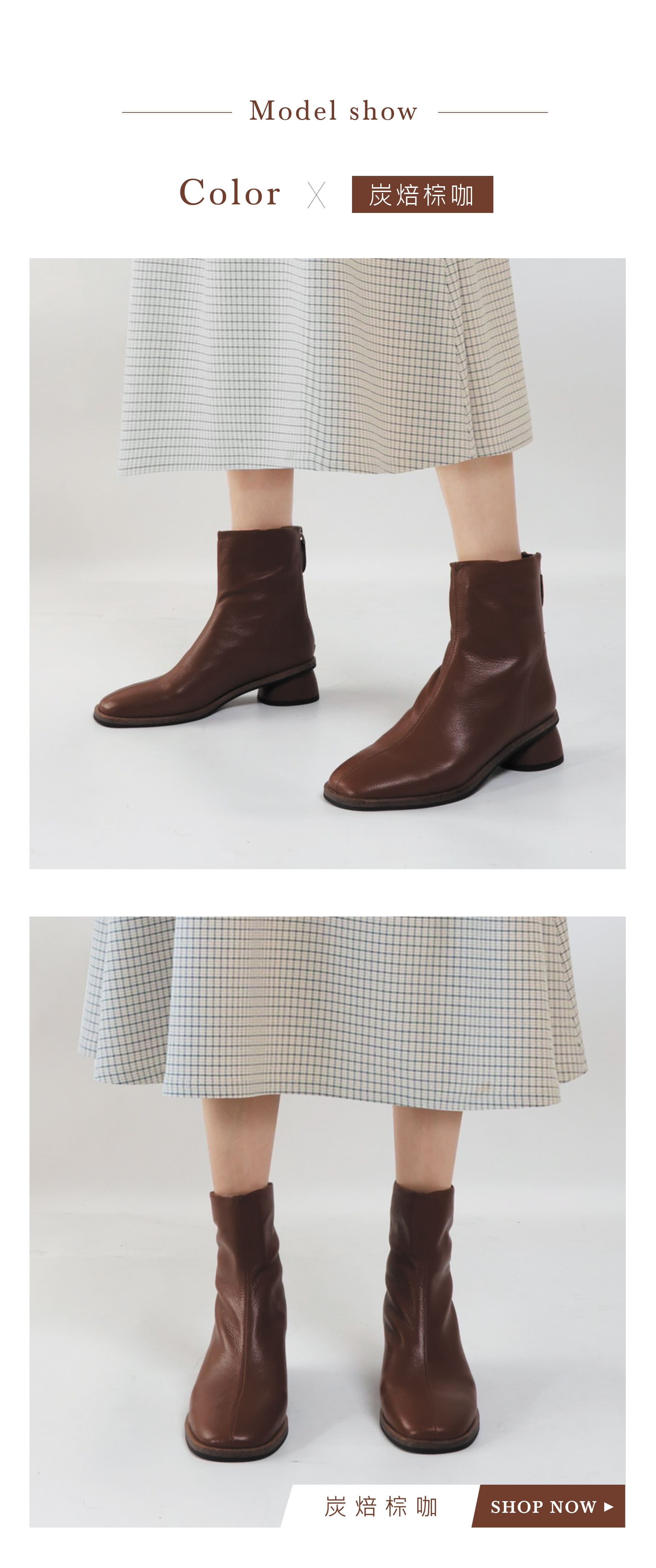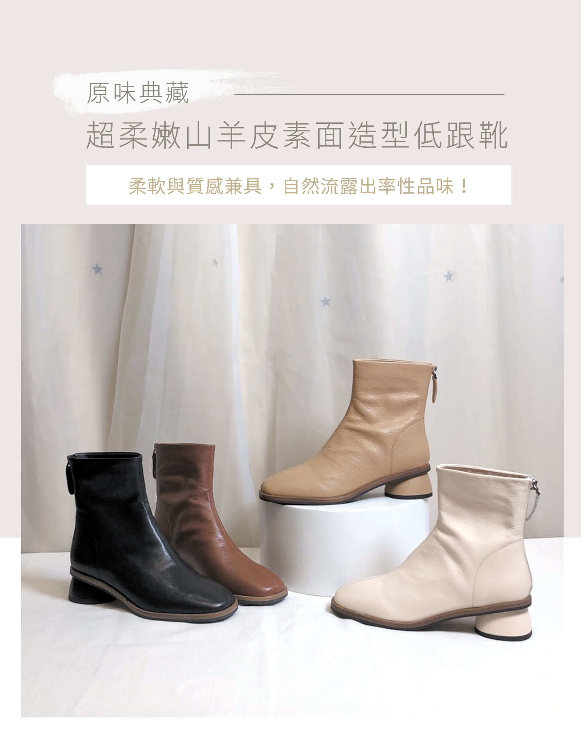 【原味典藏】超柔嫩山羊皮素面造型低跟靴