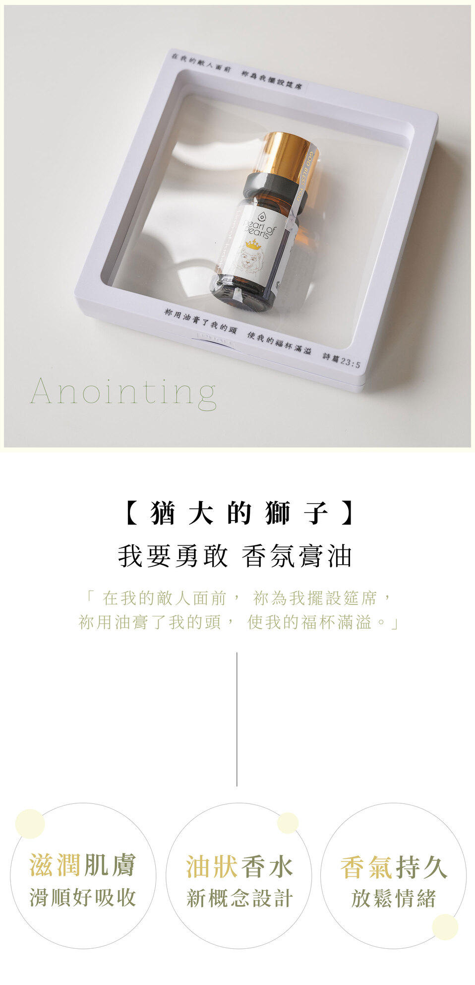 此香氛膏油的香味濃度高,請視為「香水」於局部脈搏處與需要香氛處使用,非一般大面積的身體油使用喔! - 滋潤吸收度高、小小一罐可以隨時補充。