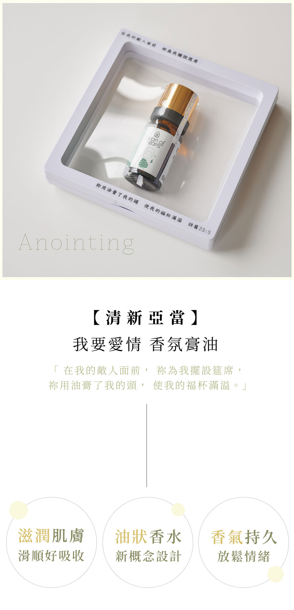 此香氛膏油的香味濃度高,請視為「香水」於局部脈搏處與需要香氛處使用,非一般大面積的身體油使用喔! - 滋潤吸收度高、小小一罐可以隨時補充。