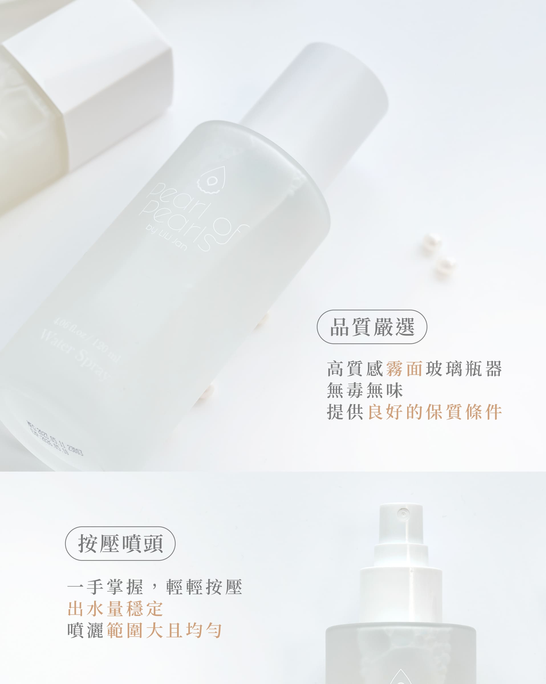 ♥ 本產品為玻璃製瓶,使用及存放時請小心輕放,請勿直接拿蓋子,要拿瓶身喔!另鎖蓋時,勿用力過猛 小心呵護這個美麗的霧玻璃瓶。 - 系列套組:白珍珠3入組