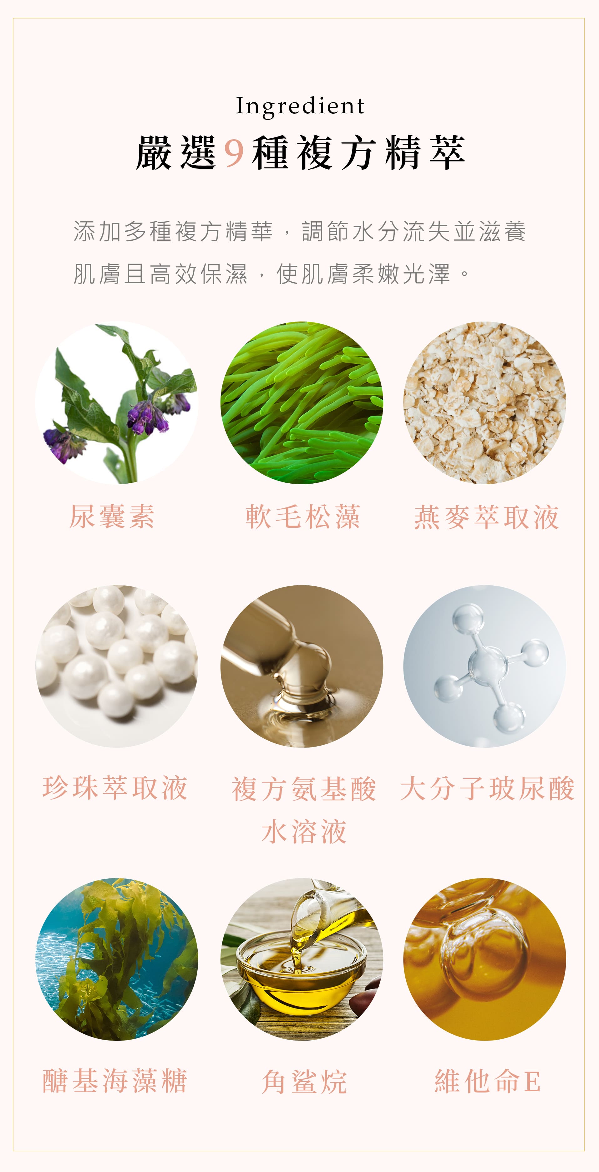 並且都添加了萬能成分的抗氧化維他命E,是保護肌膚的天然屏障。 - 本商品無添加酒精、無色素、無香精,因含有天然精油等成分,使用時請勿太過接近眼部周圍肌膚。