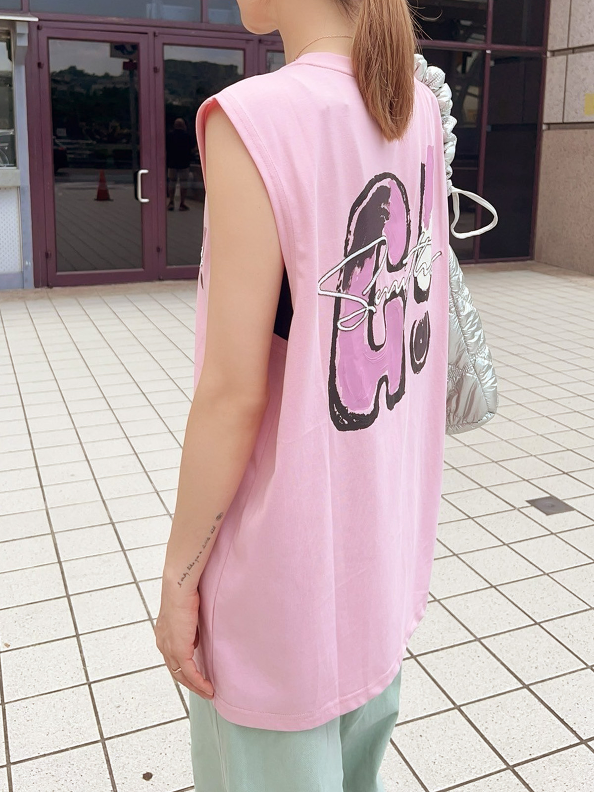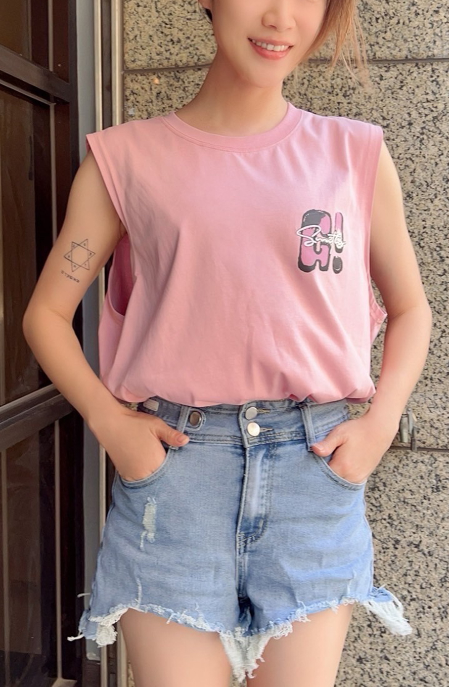 Style.2 → 背心紮進牛仔短褲,風格清新活潑!側邊寬鬆的袖口方便活動。