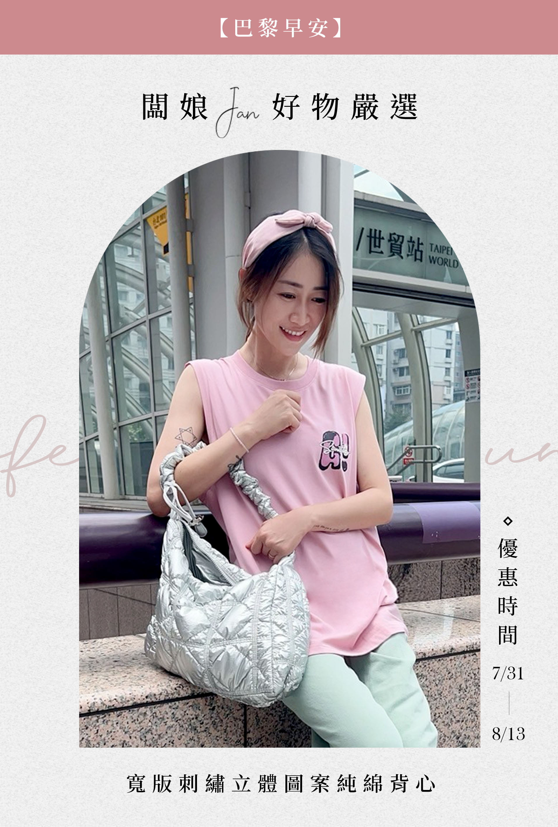 → 柔和不甜膩的粉紅色,搭配高質感刺繡設計,是一件街頭感的休閒背心!