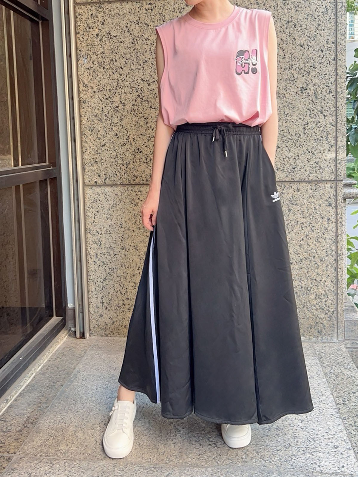 Style.3 → 休閒背心與黑白色運動風裙子搭配,也顯得個性十足,搭配可塑性好高!