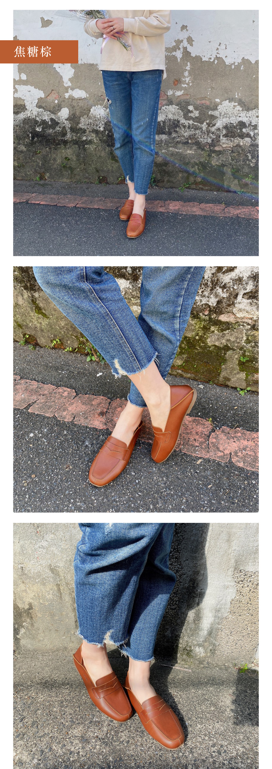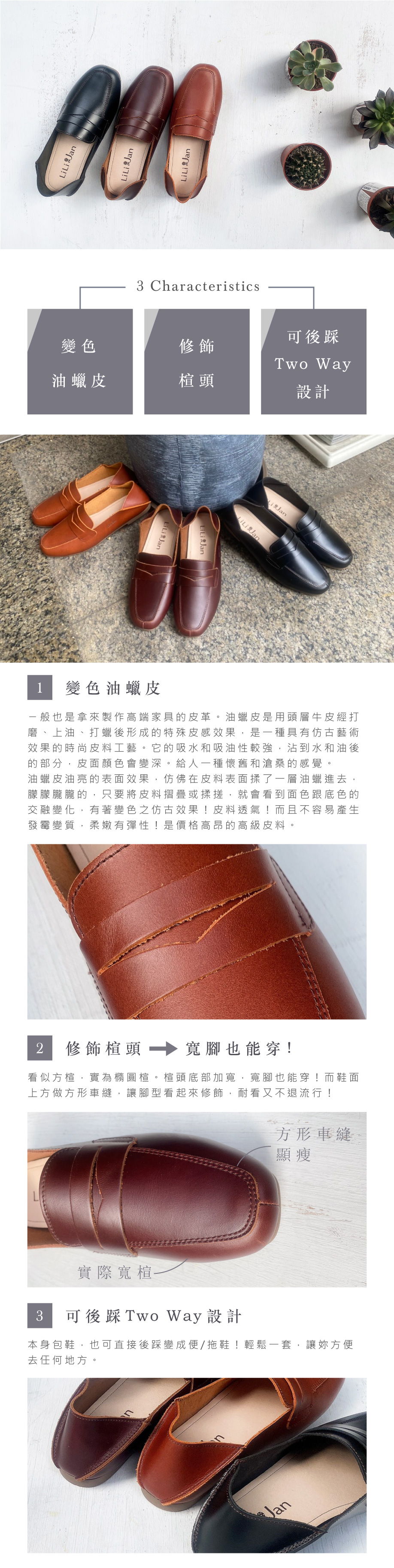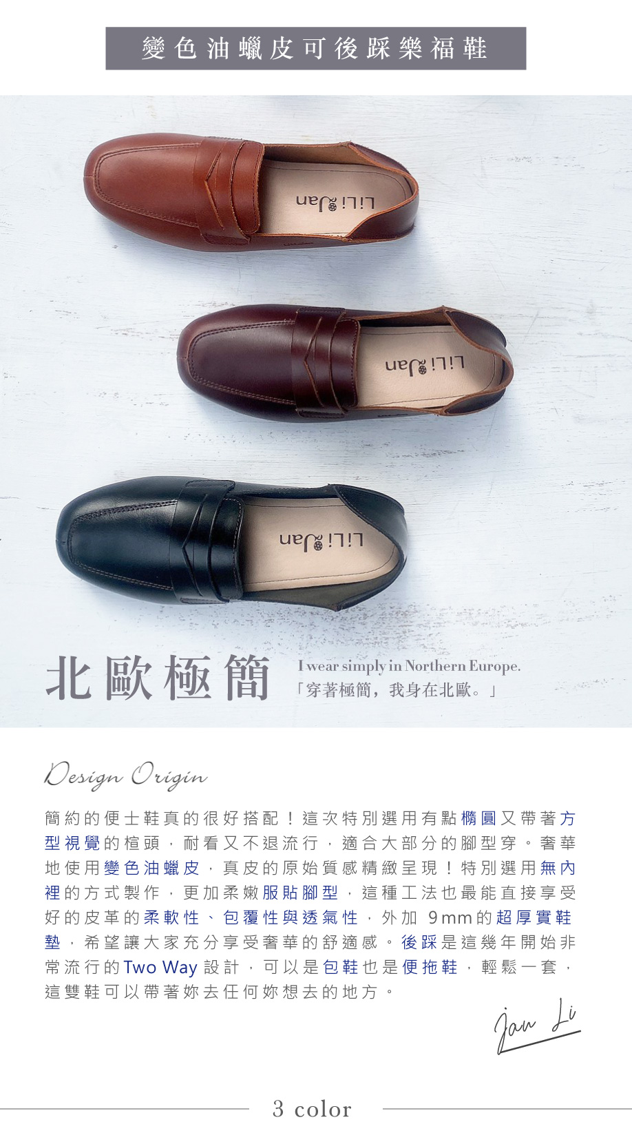 【北歐極簡】變色油蠟皮可後踩樂福鞋
