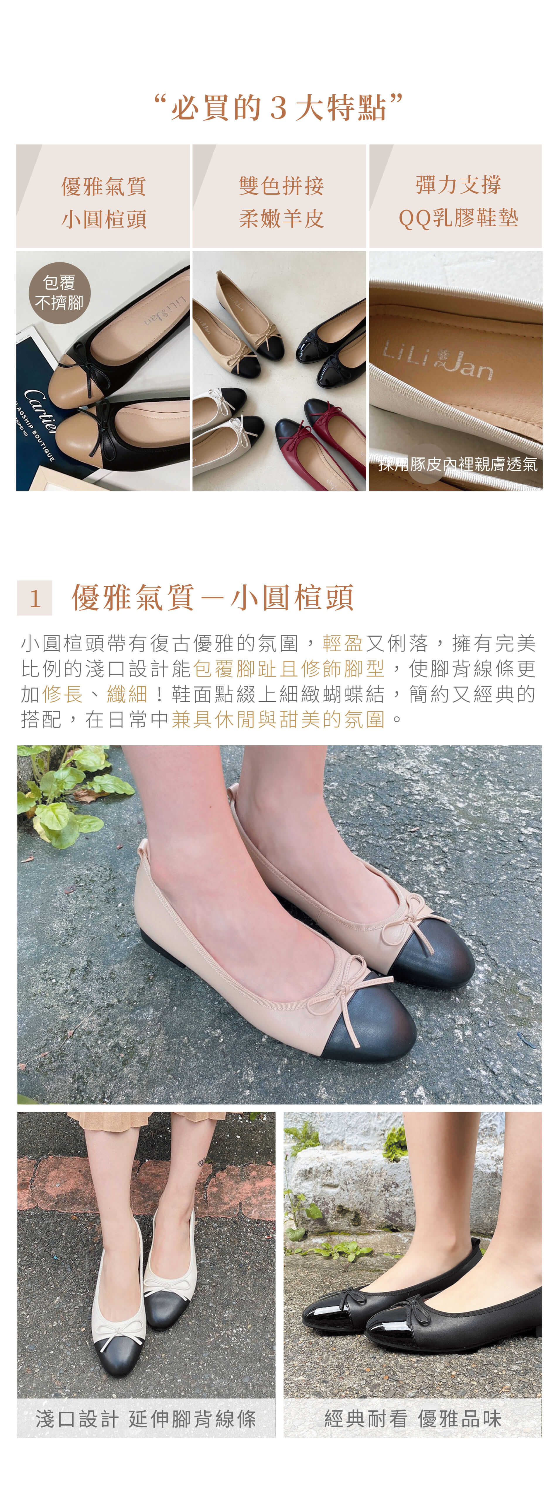 【時光停留】柔嫩羊皮雙色芭蕾舞鞋