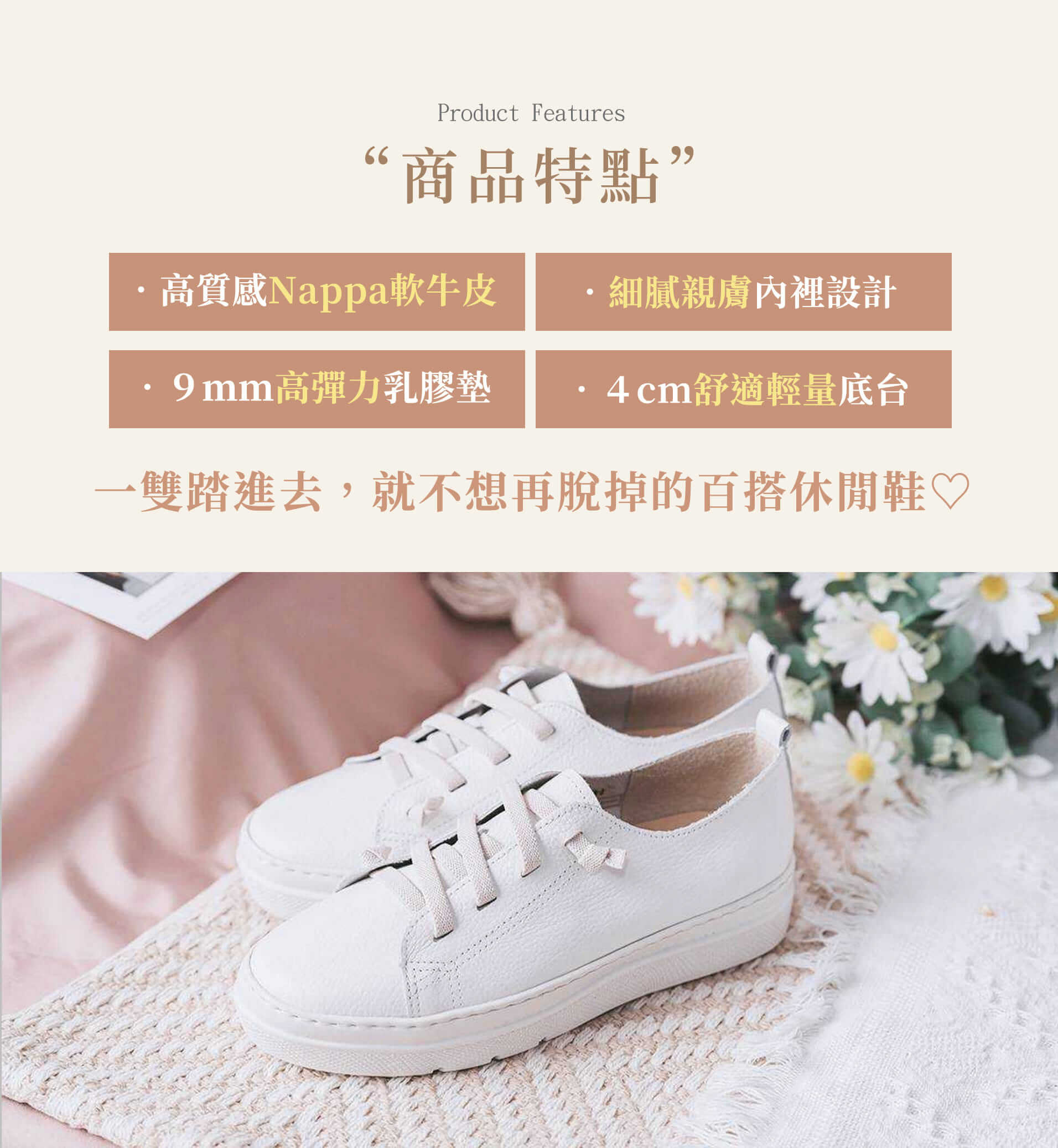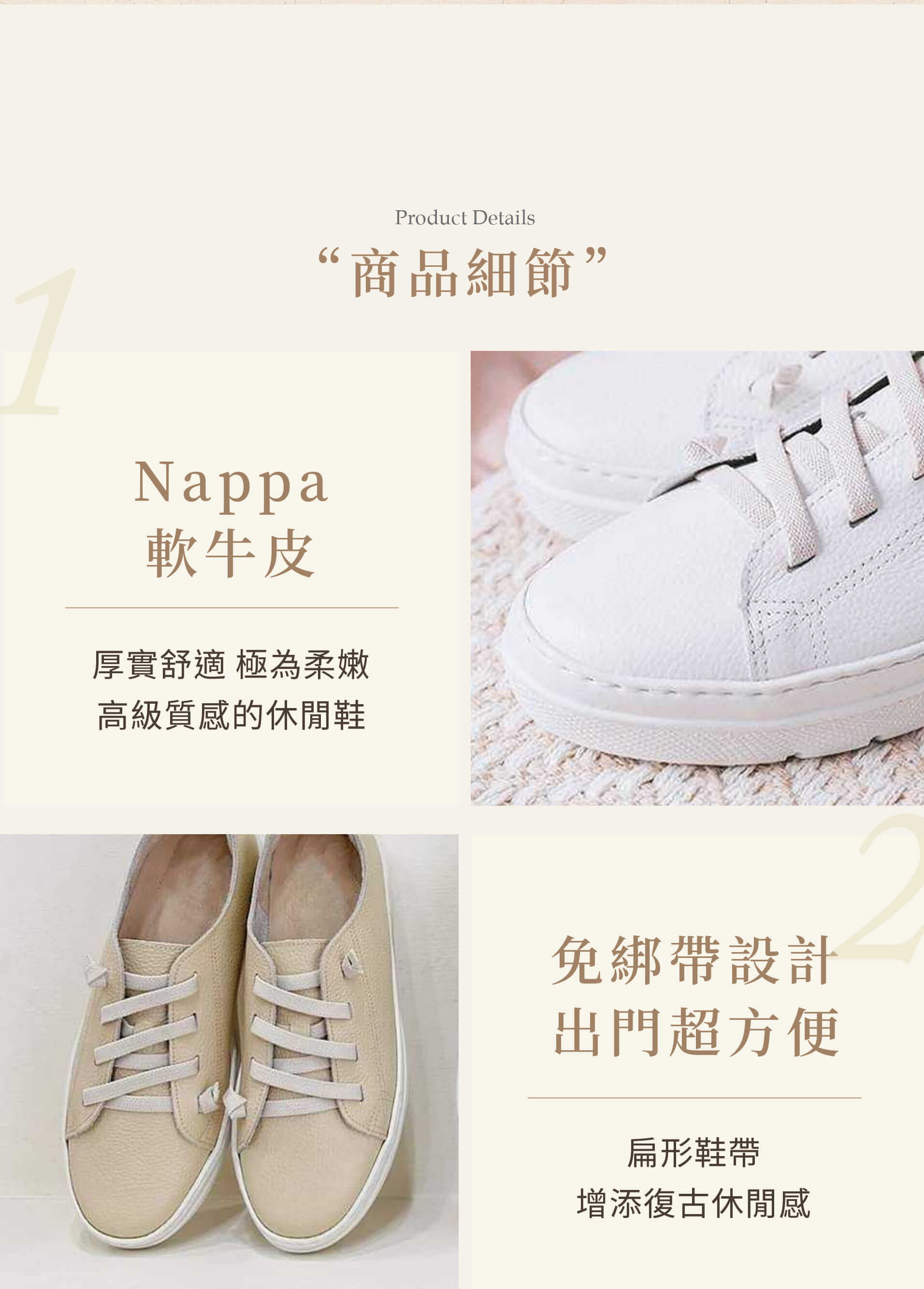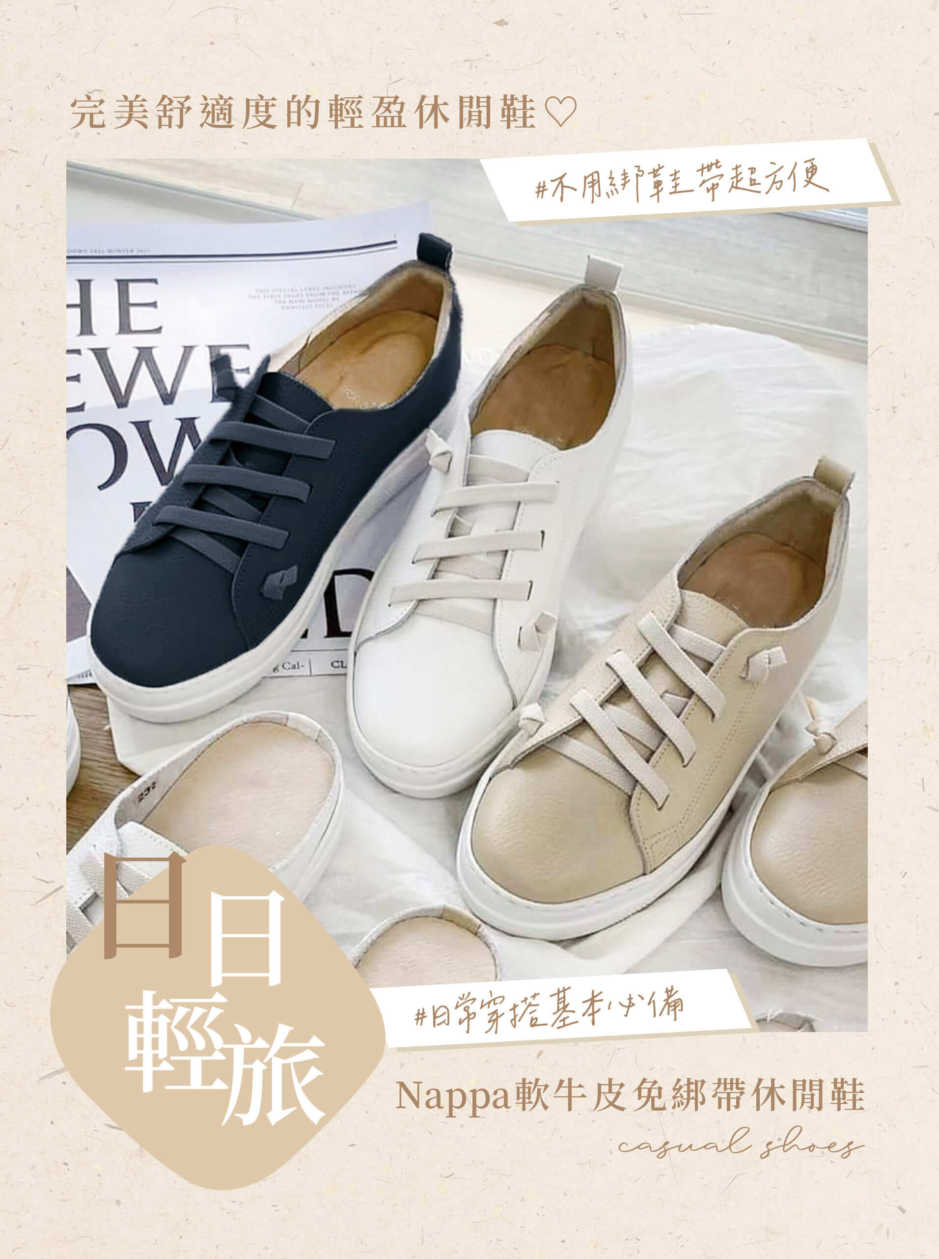 【日日輕旅】Nappa軟牛皮免綁帶休閒鞋