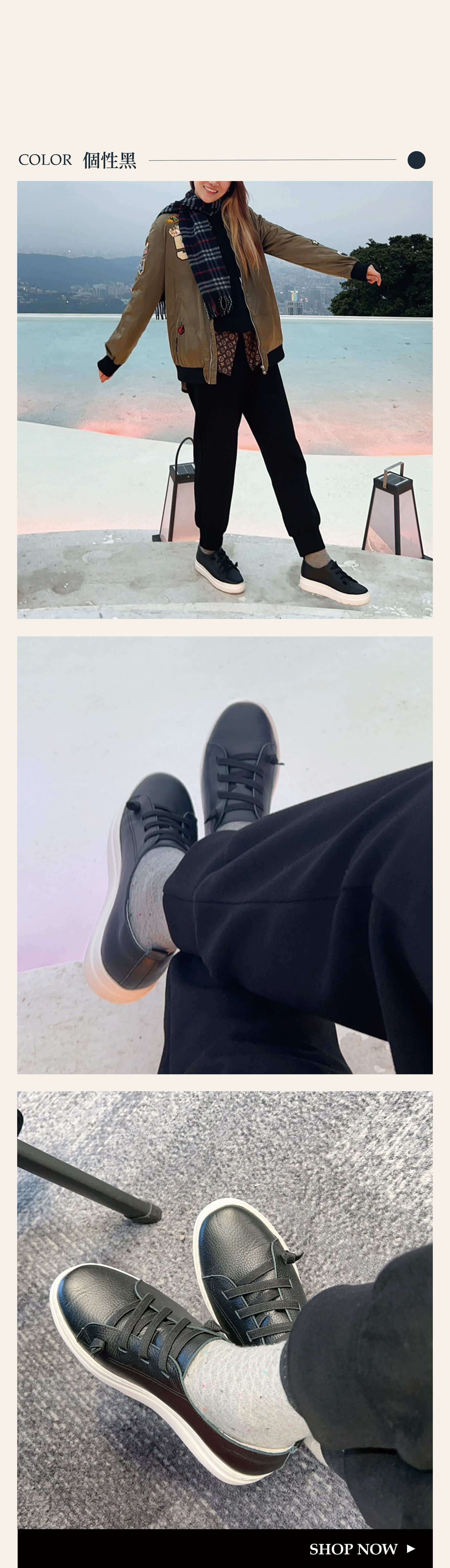 【日日輕旅】Nappa軟牛皮免綁帶休閒鞋_個性黑(23)