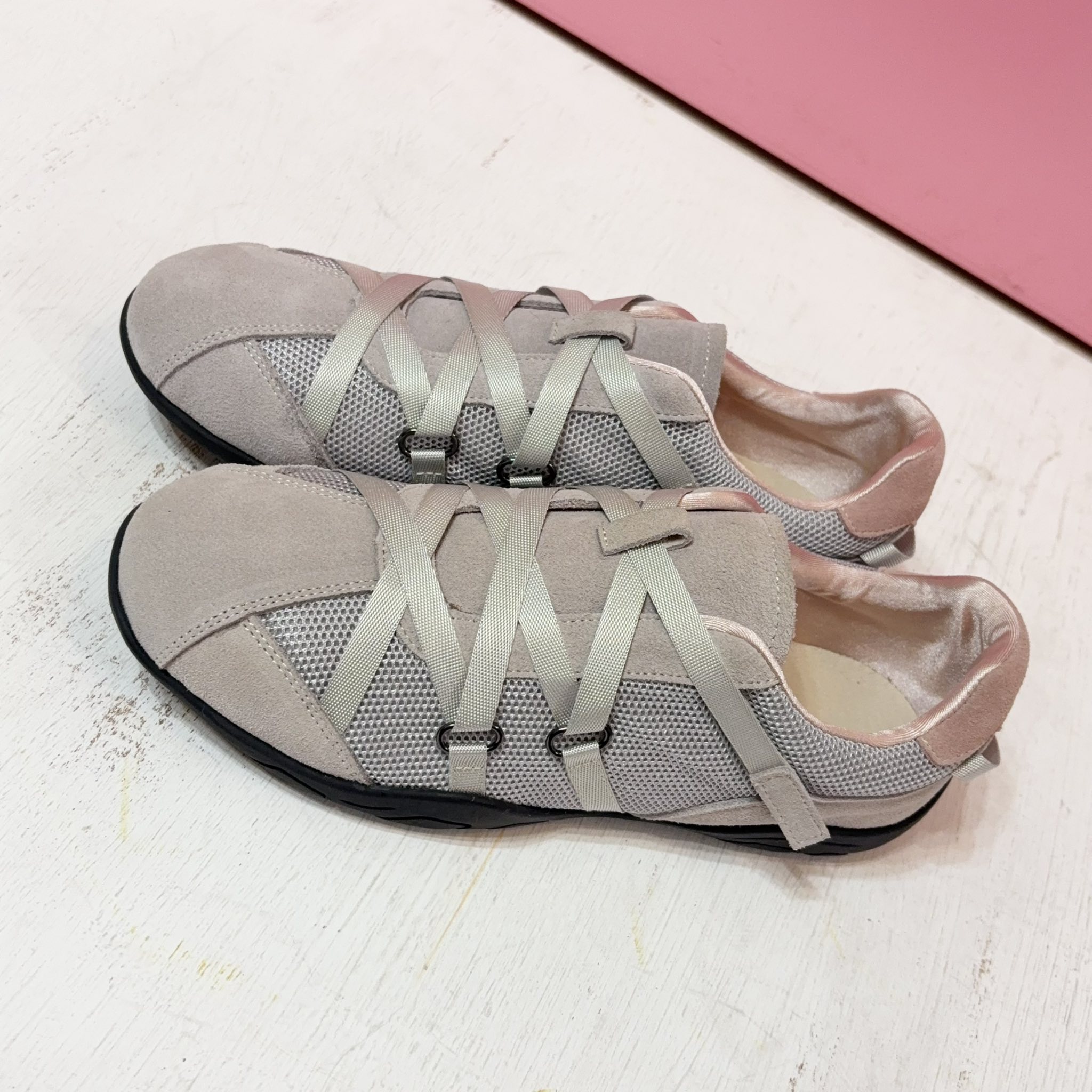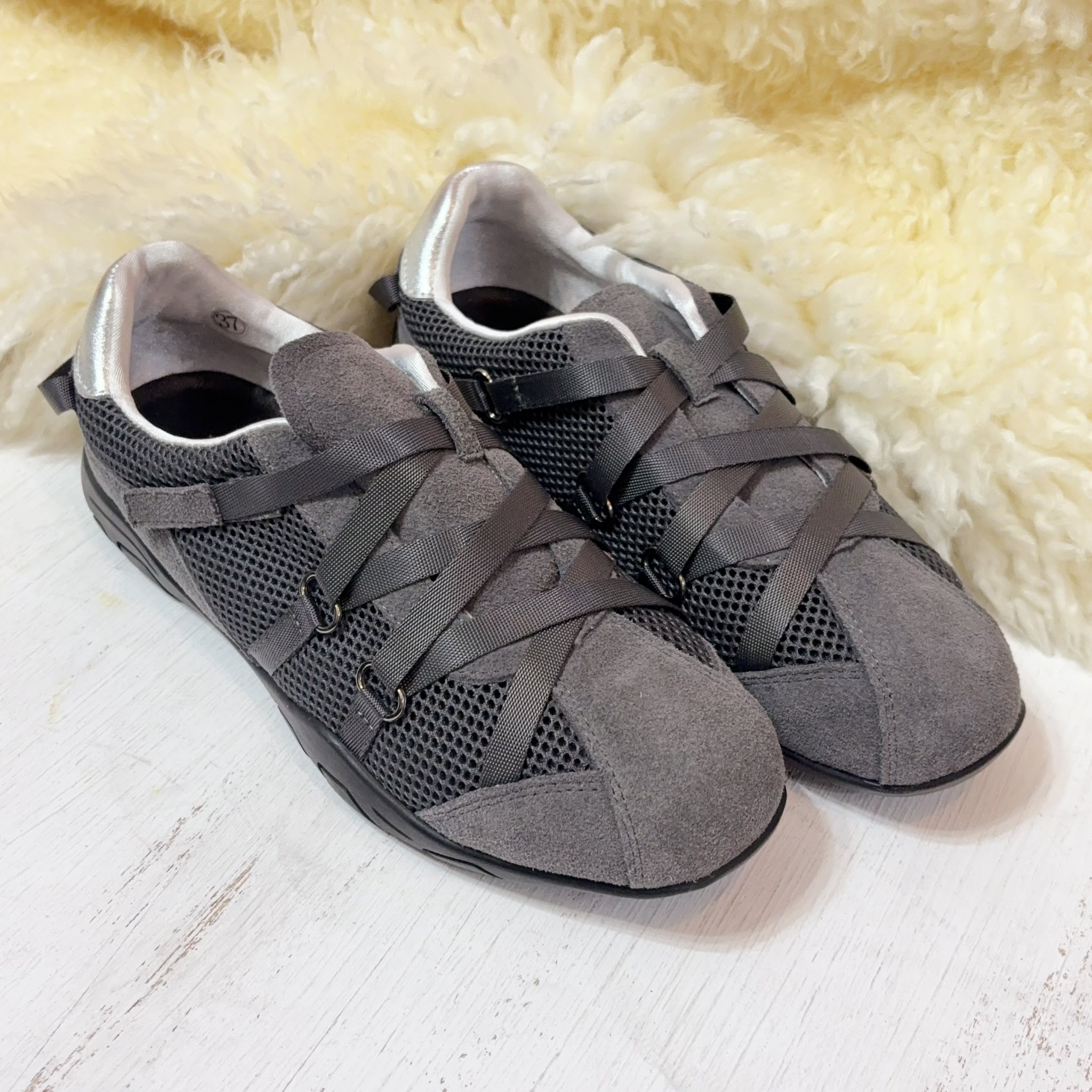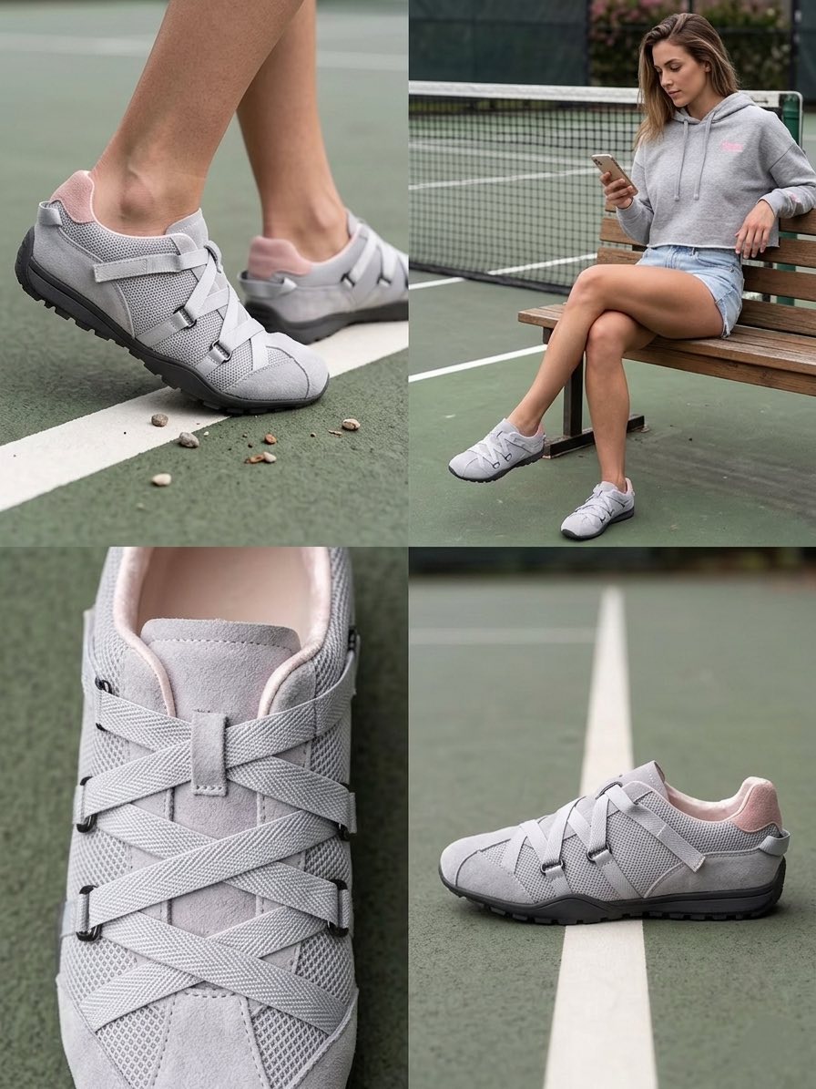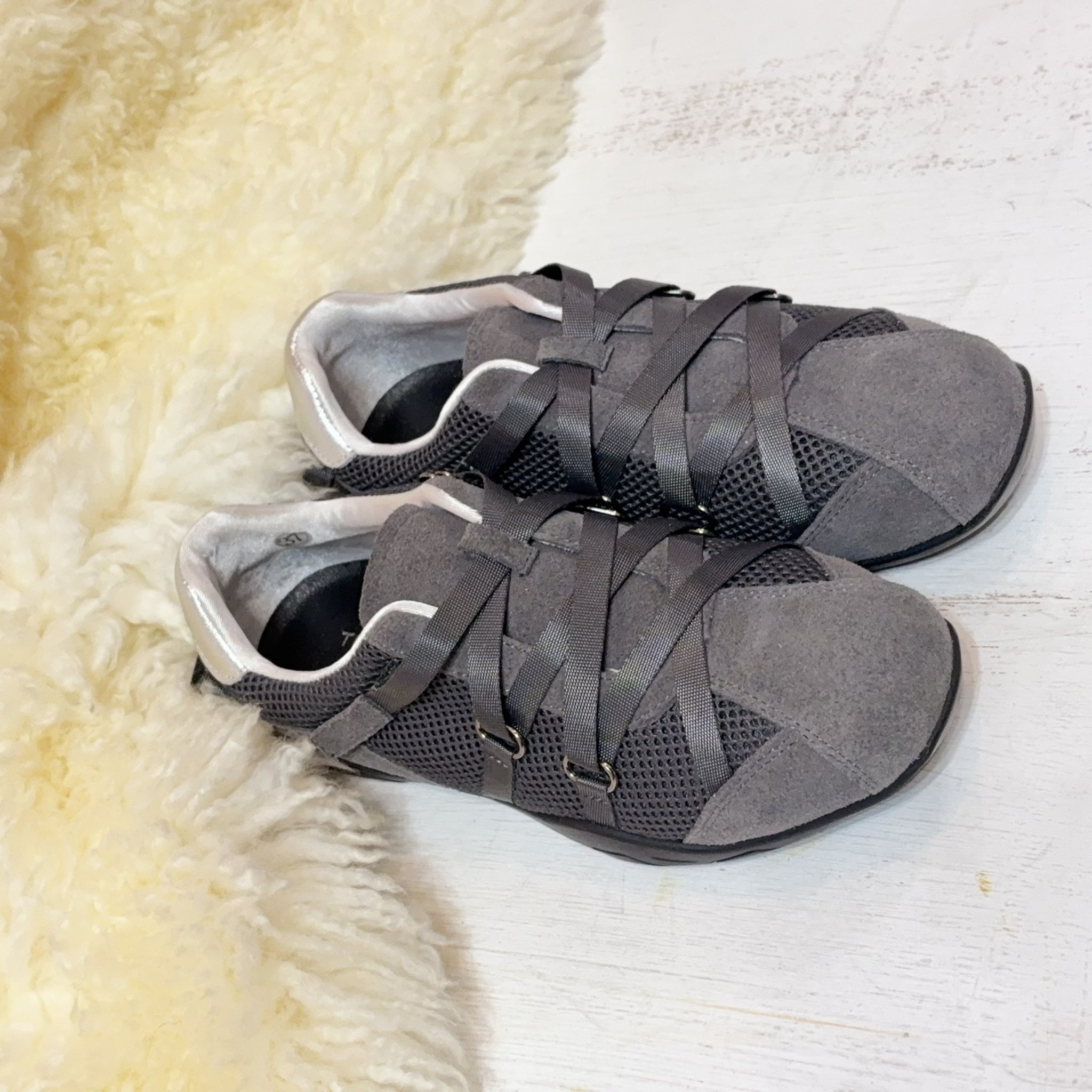 獨特的交叉編織鞋帶設計,不僅包覆感極佳,更散發低調時尚感。內襯選用滑嫩親膚的特殊材質,讓妳無論穿梭城市或休閒運動,