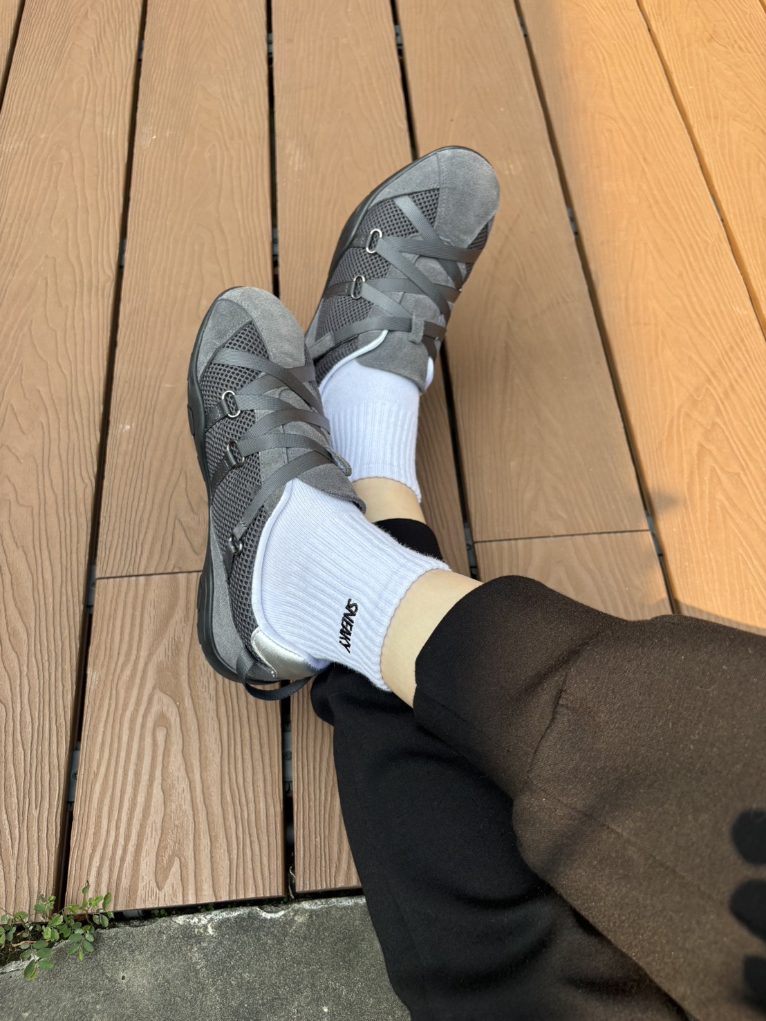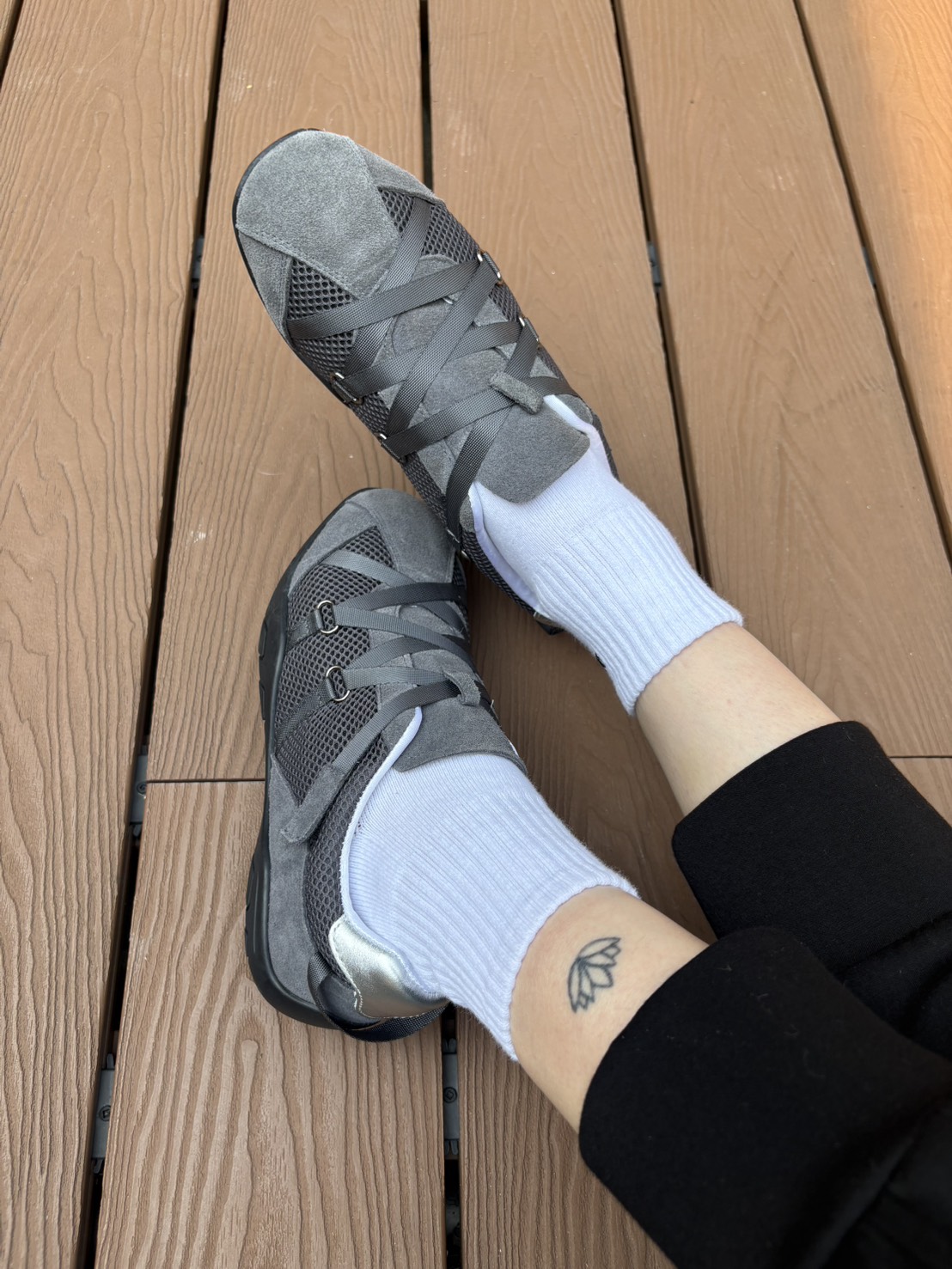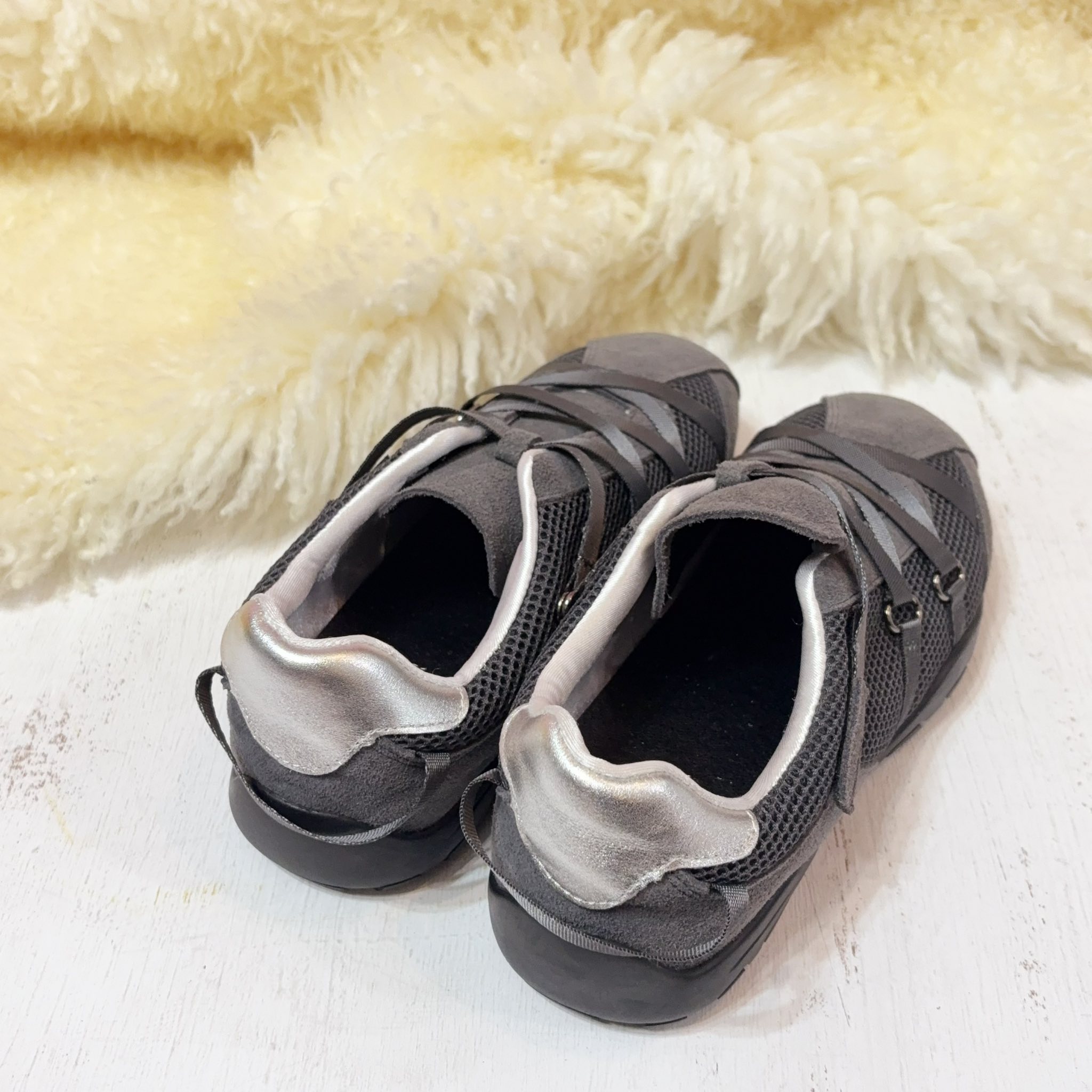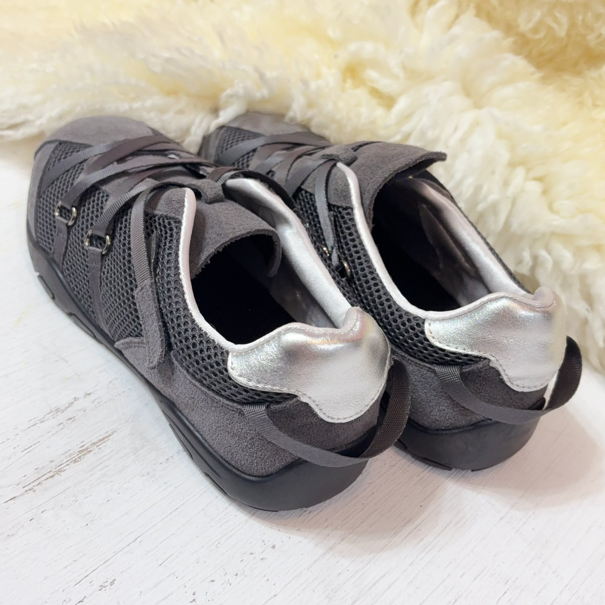 獨特的交叉編織鞋帶設計,不僅包覆感極佳,更散發低調時尚感。內襯選用滑嫩親膚的特殊材質,讓妳無論穿梭城市或休閒運動,