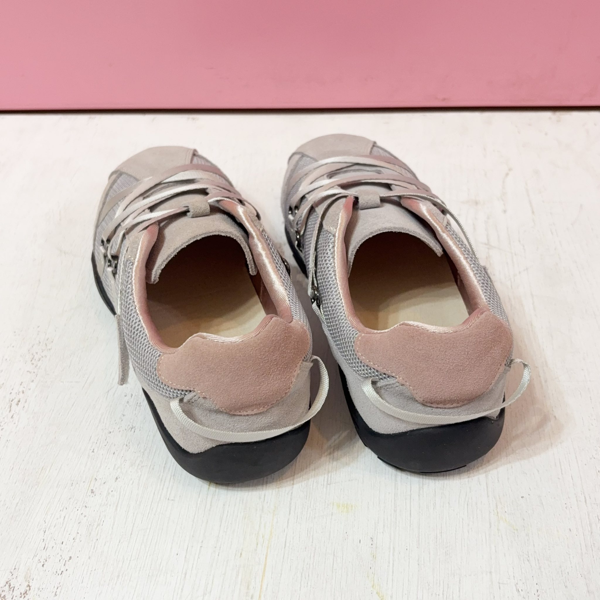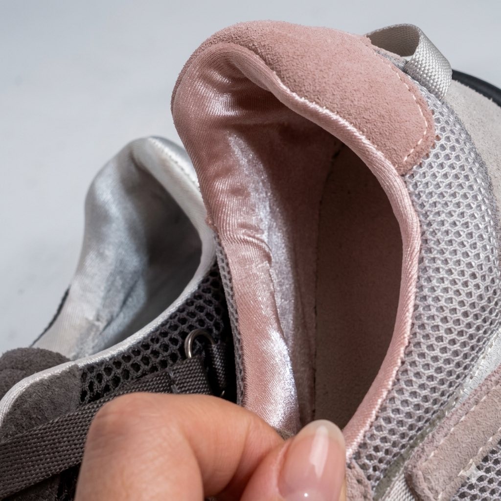 後跟搭配淡淡的粉色皮料!