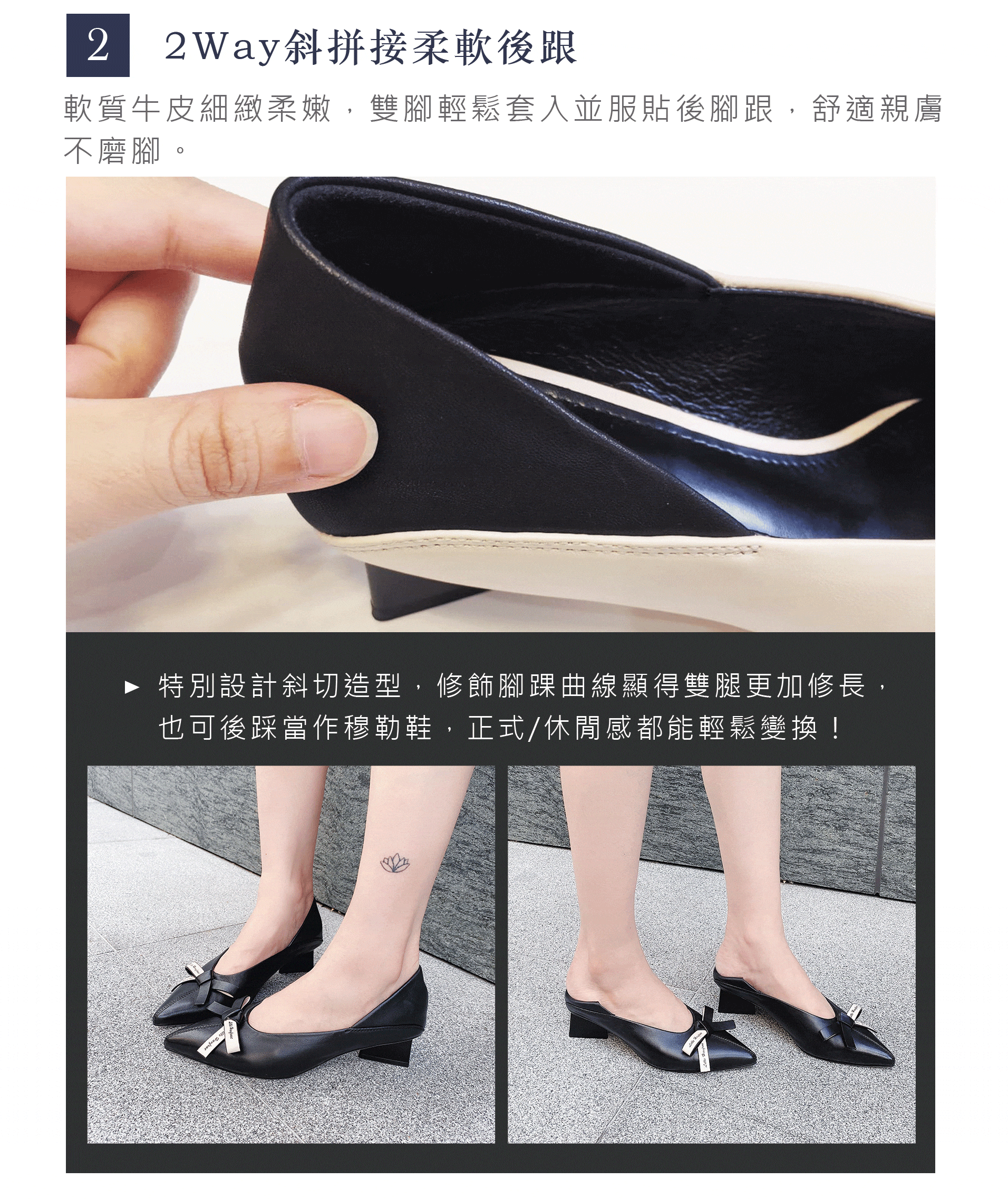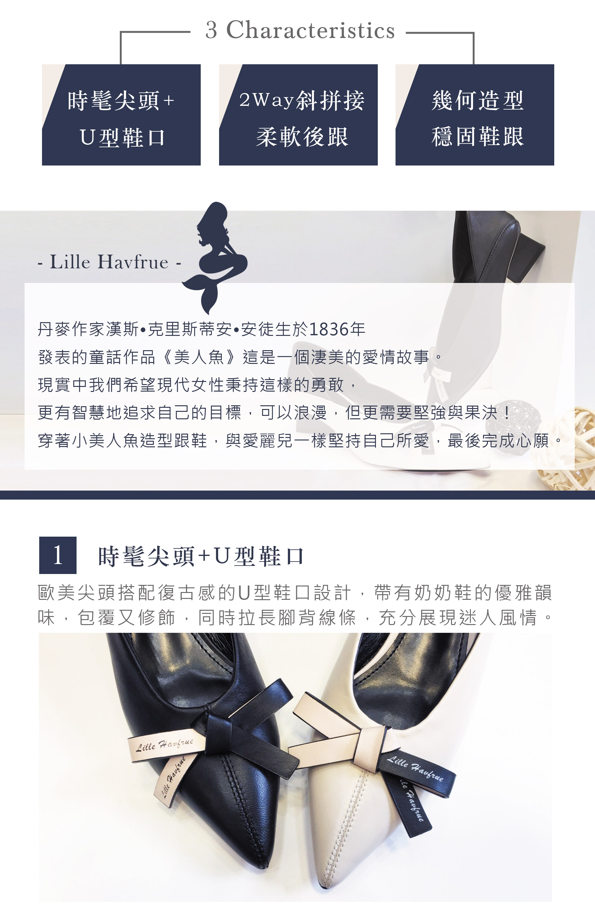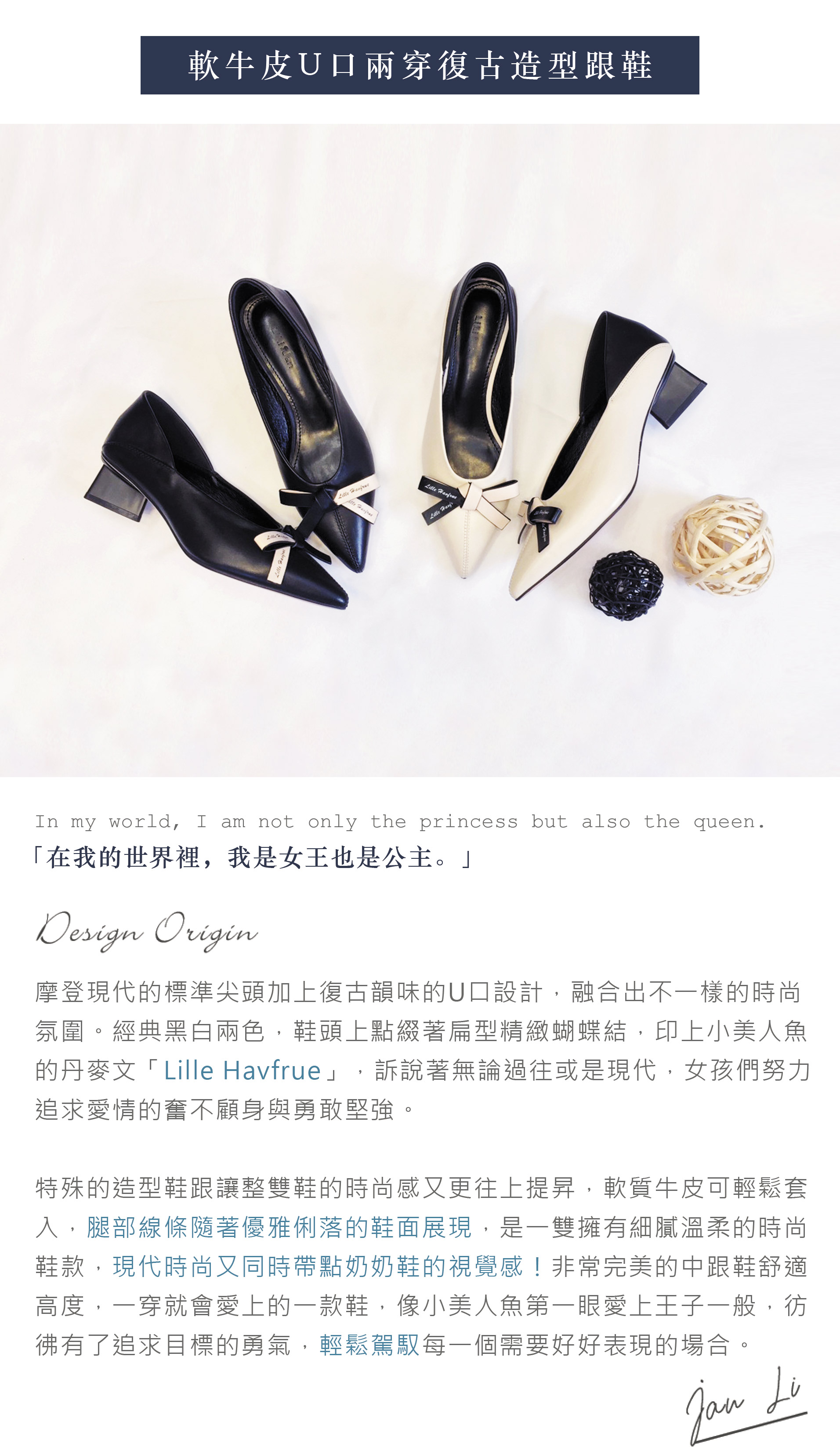 【小美人魚】軟牛皮U口兩穿復古造型跟鞋