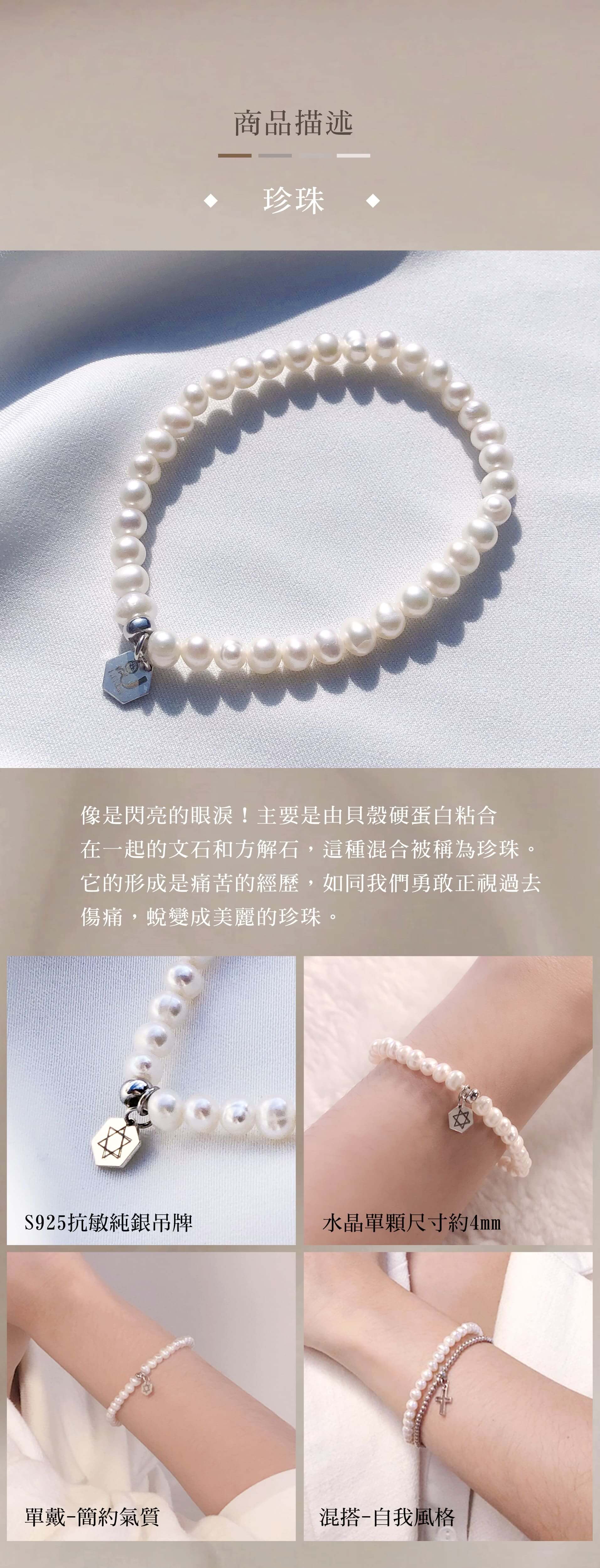 - 天然珍珠呈不同程度的圓形或不規則形,加上手工製作每條珍珠手環大小會有些微差距,故以實際穿戴為主,若有尺寸不合皆享7天鑑賞期退換貨之服務。
