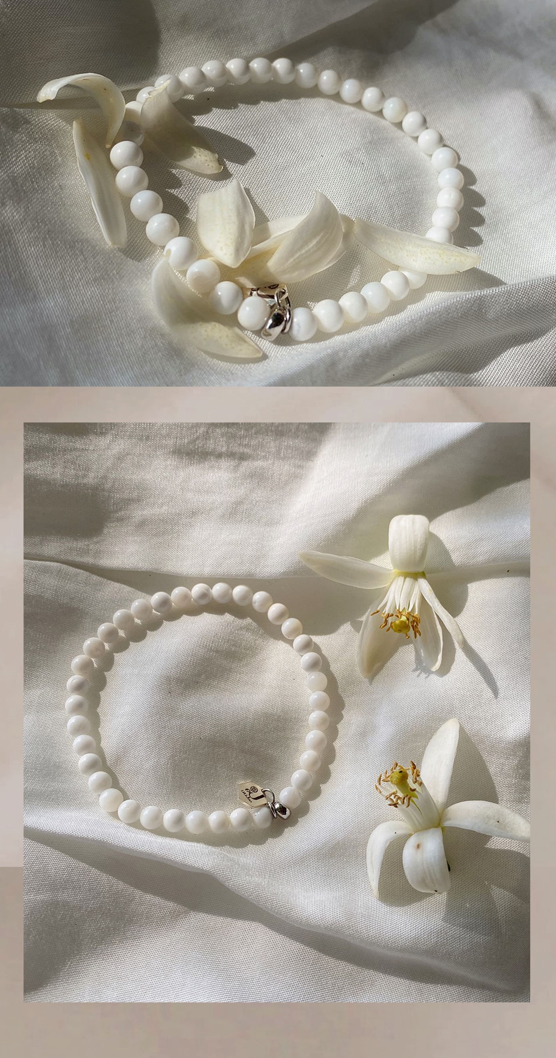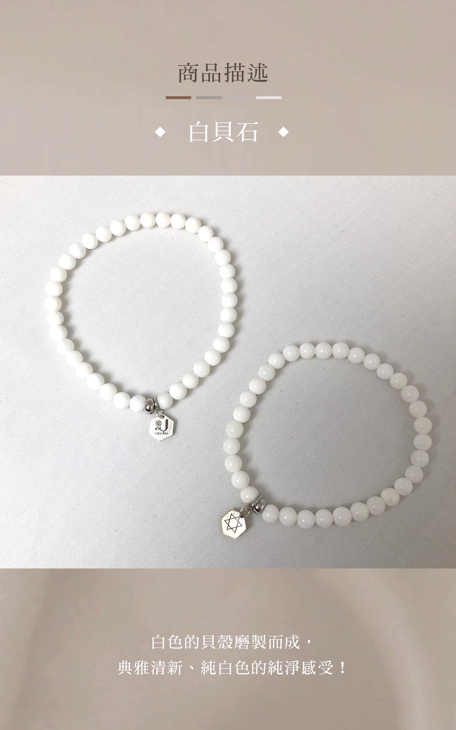 - 白色的貝殼磨製而成,典雅清新、純白色的純淨感受!