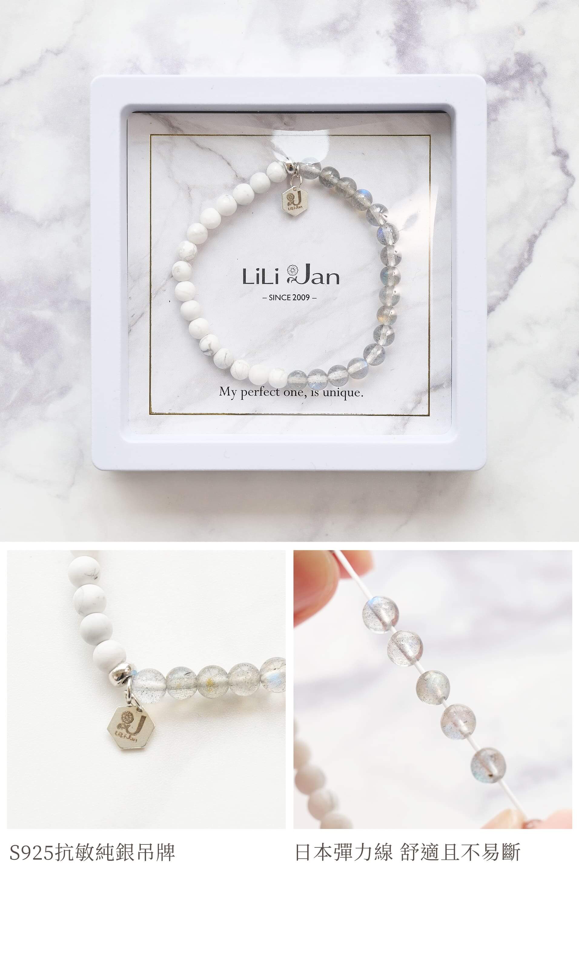- 灰月光與白松石交織,和諧又充滿視覺焦點。