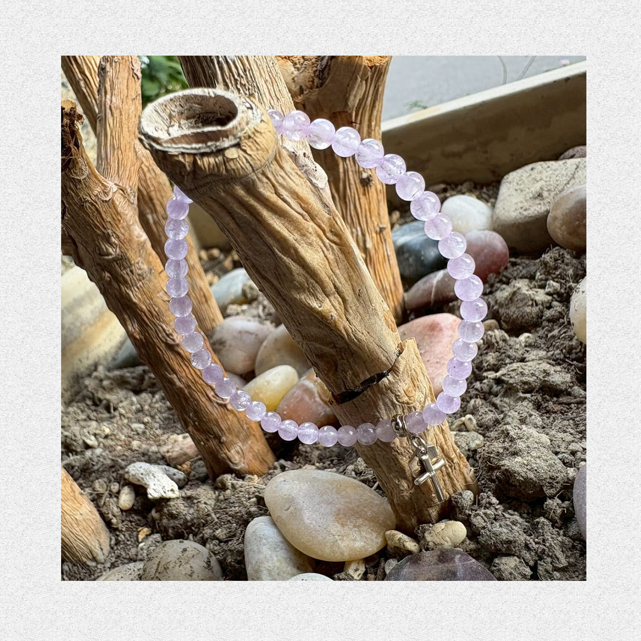 - 柔和的淡紫色調像是薰衣草的顏色, 優柔雅致,呈現半透明的晶透色澤。 每個女人的夢幻質感水晶飾品,舉手 投足都能散發迷人的氣質。