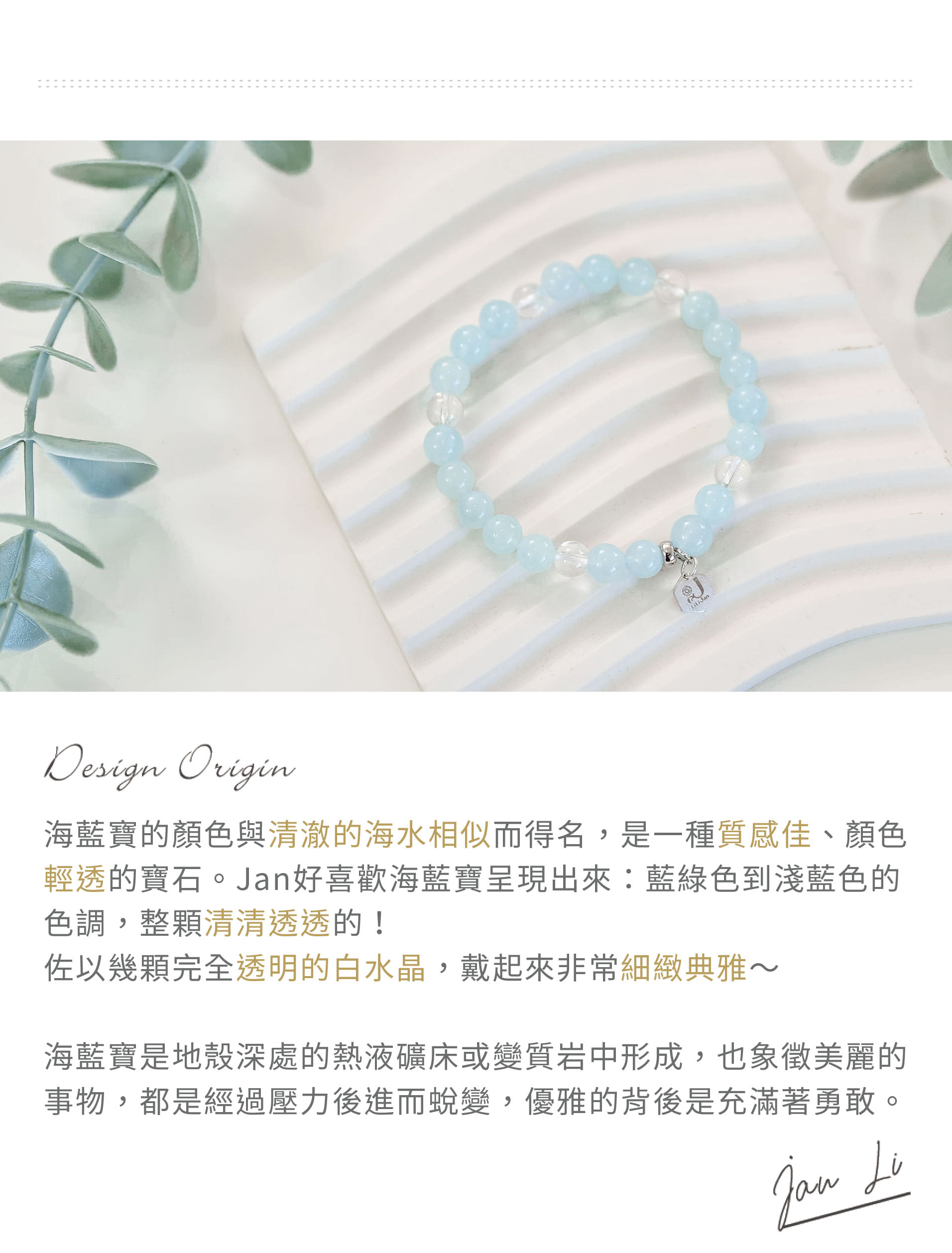 - 3月誕生石「海藍寶」(Aquamarine)是一種矽酸鹽礦物,屬於綠柱石(Beryl)的一種。獲得名稱來自拉丁文的「aqua marina」,意為「海水」,因其顏色與清澈的海水相似而得名,通常呈現藍綠色到淺藍色的色調,透明度高,是一種受人喜愛的寶石。