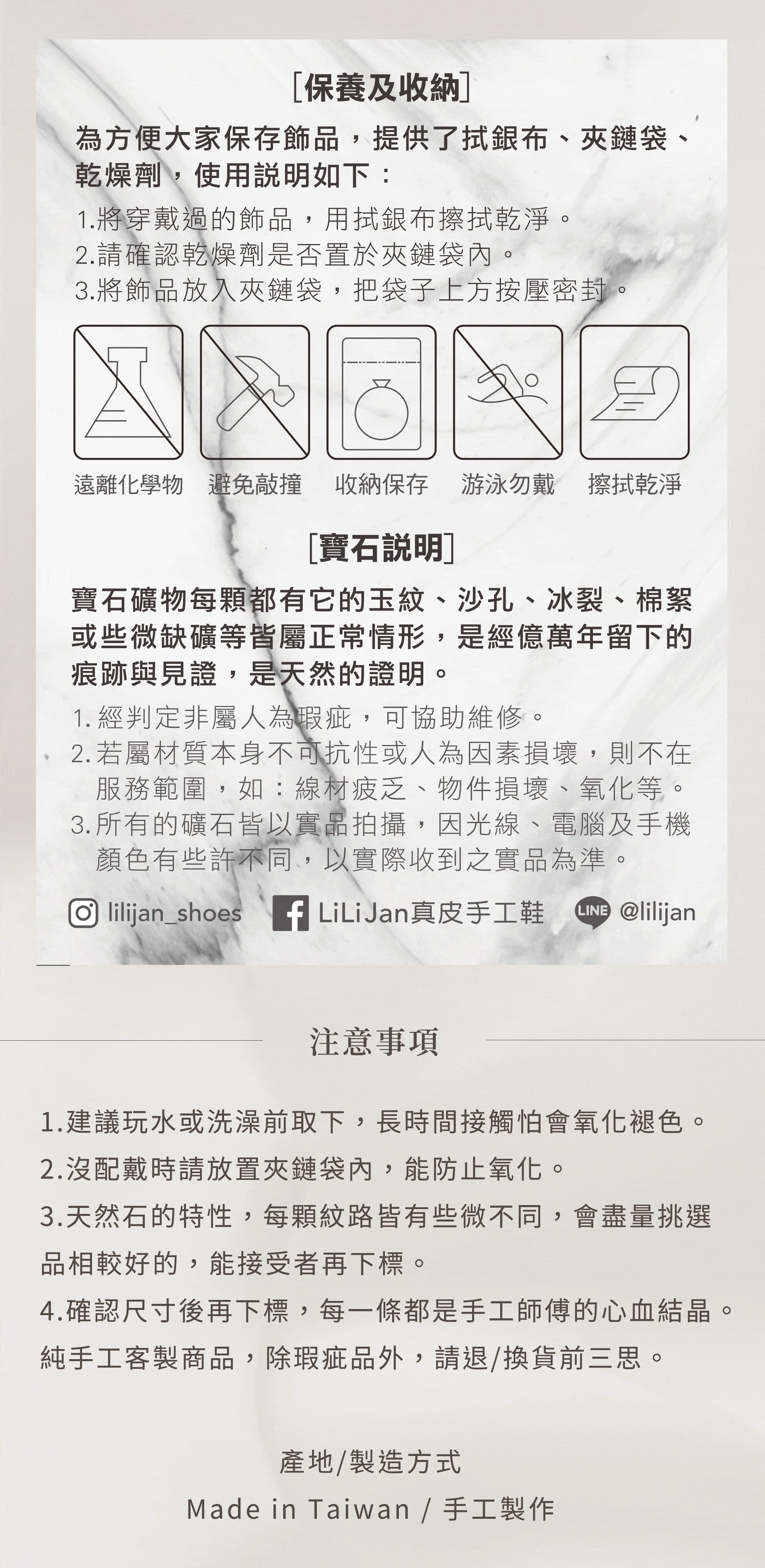 - 寶石礦物每顆都有它的玉紋、沙孔、冰裂、棉絮或是微缺礦等皆屬正常情形,是天然水晶的證明,不構成免費退換貨服務範疇,完美主義者請自行斟酌,不介意者再下單。