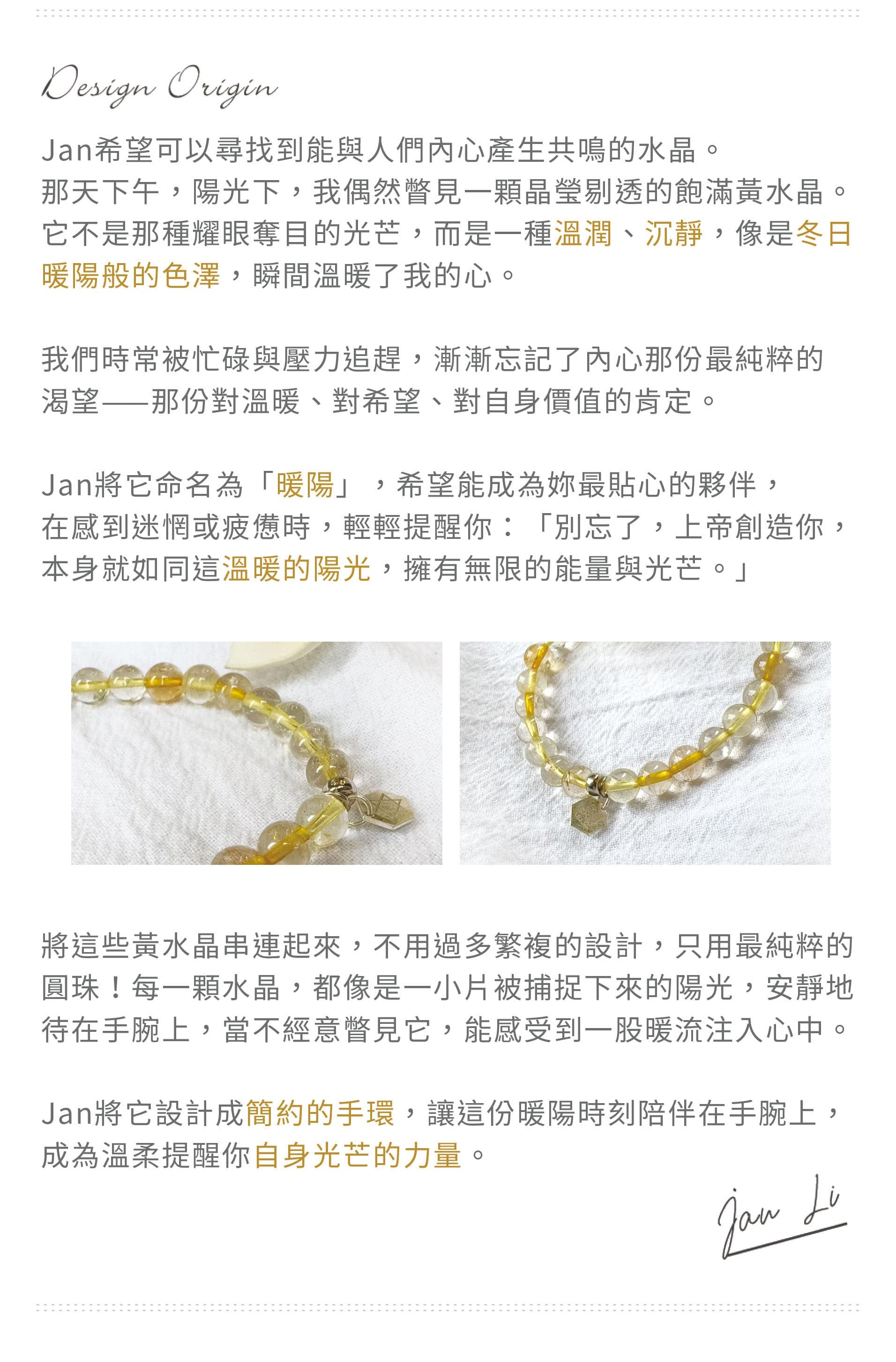 - 在11月的冬日,選用金髮晶為主角!彷彿是冬日裡的一絲暖陽,瞬間溫暖了心。
