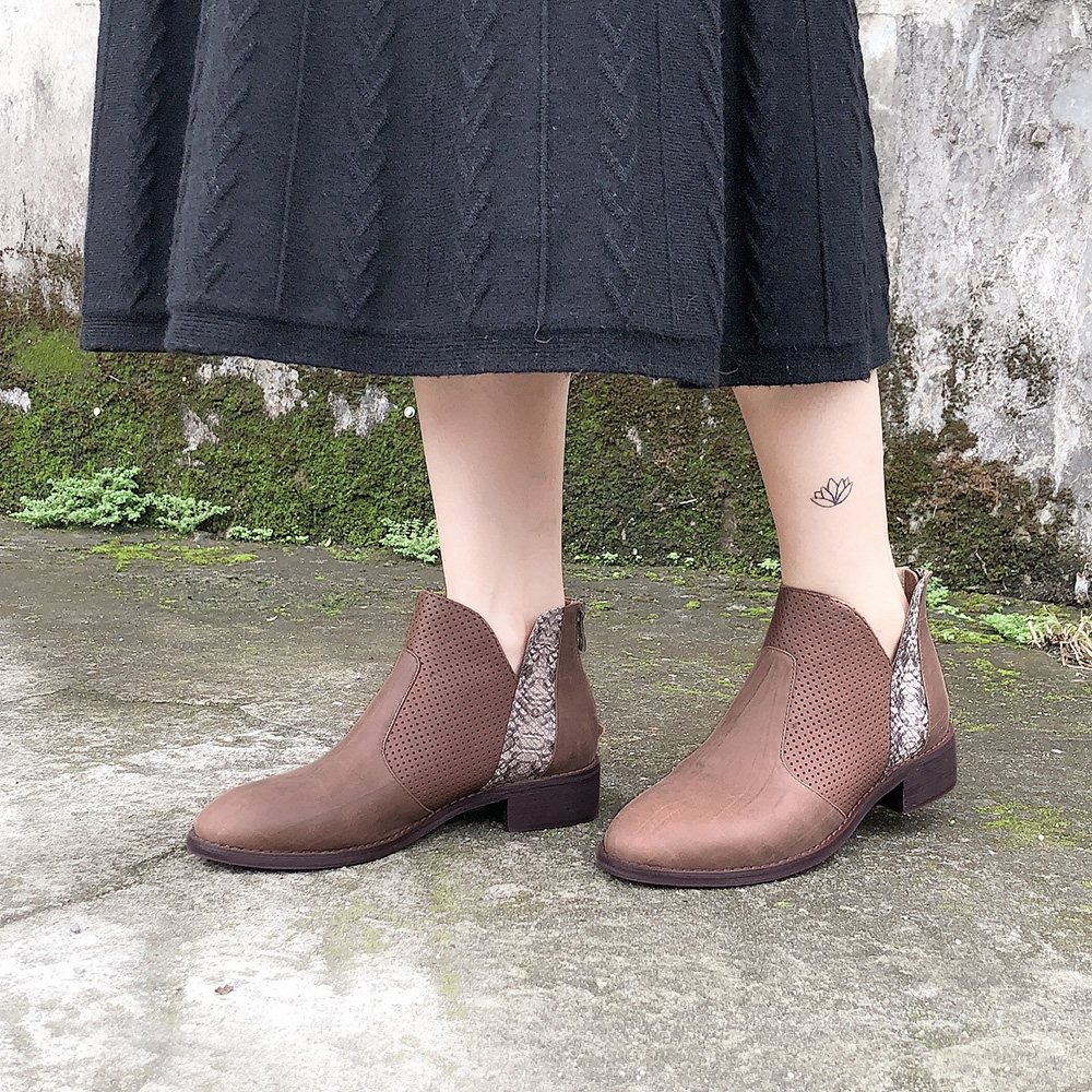 全真皮率性中跟短靴_駝色蛇紋(點上圖看商品細節)