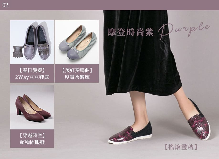 清倉特賣.【春日漫遊】純牛皮Two Way媽媽跳跳鞋_柔嫩紫/灰(23)(建議大半號) +