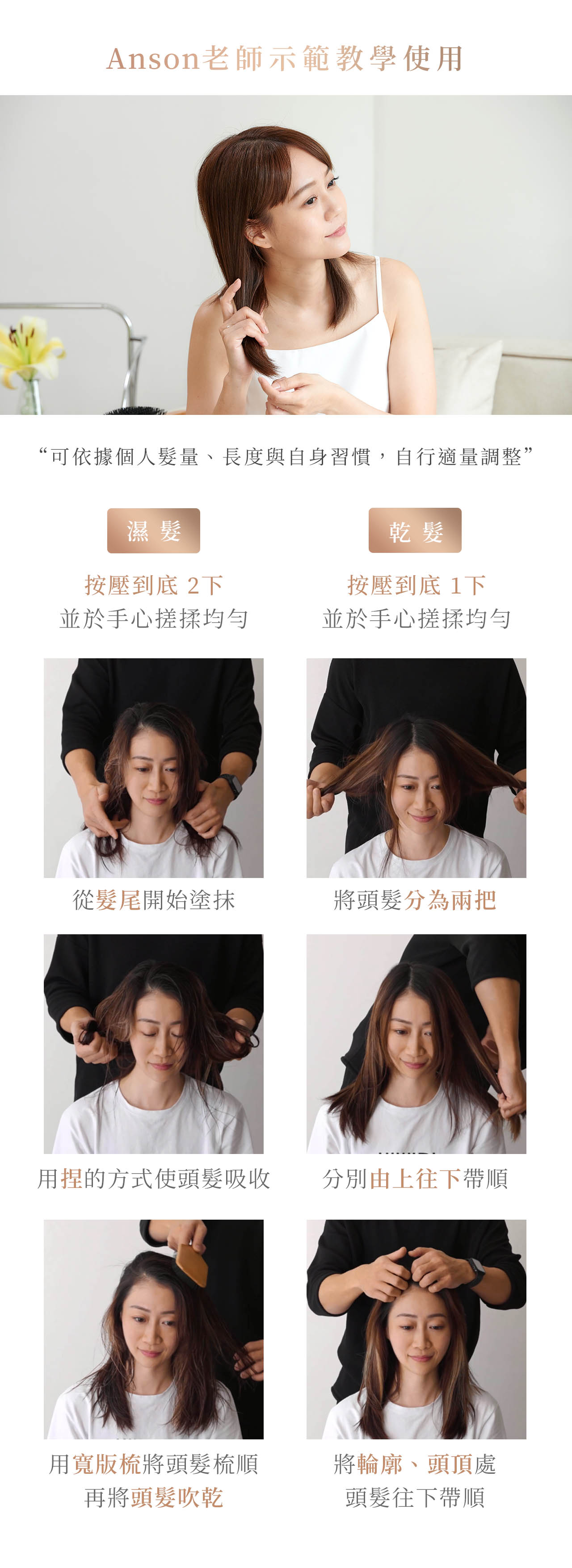 - 深度滋養受損秀髮、保濕亮澤、減少造型工具的熱傷害。